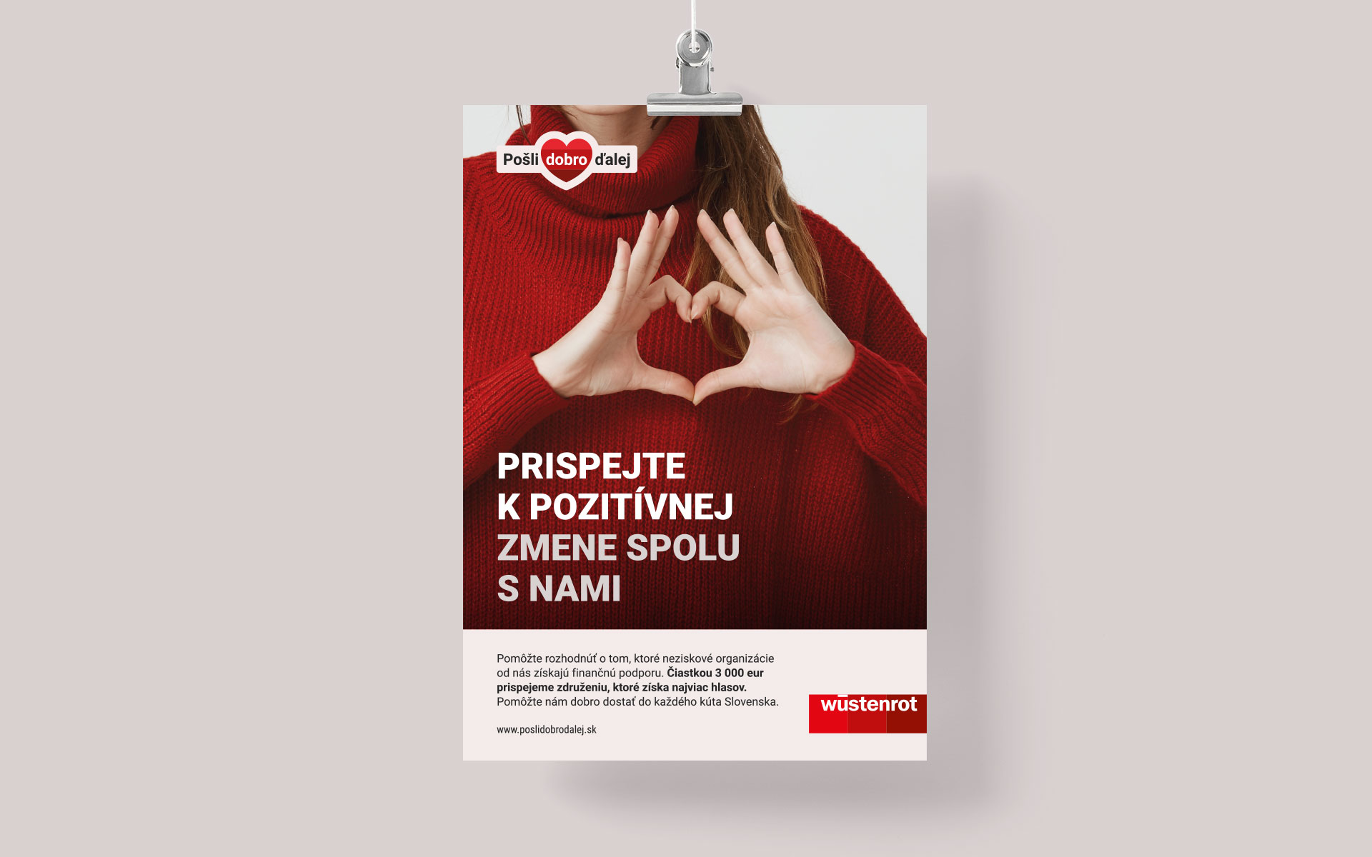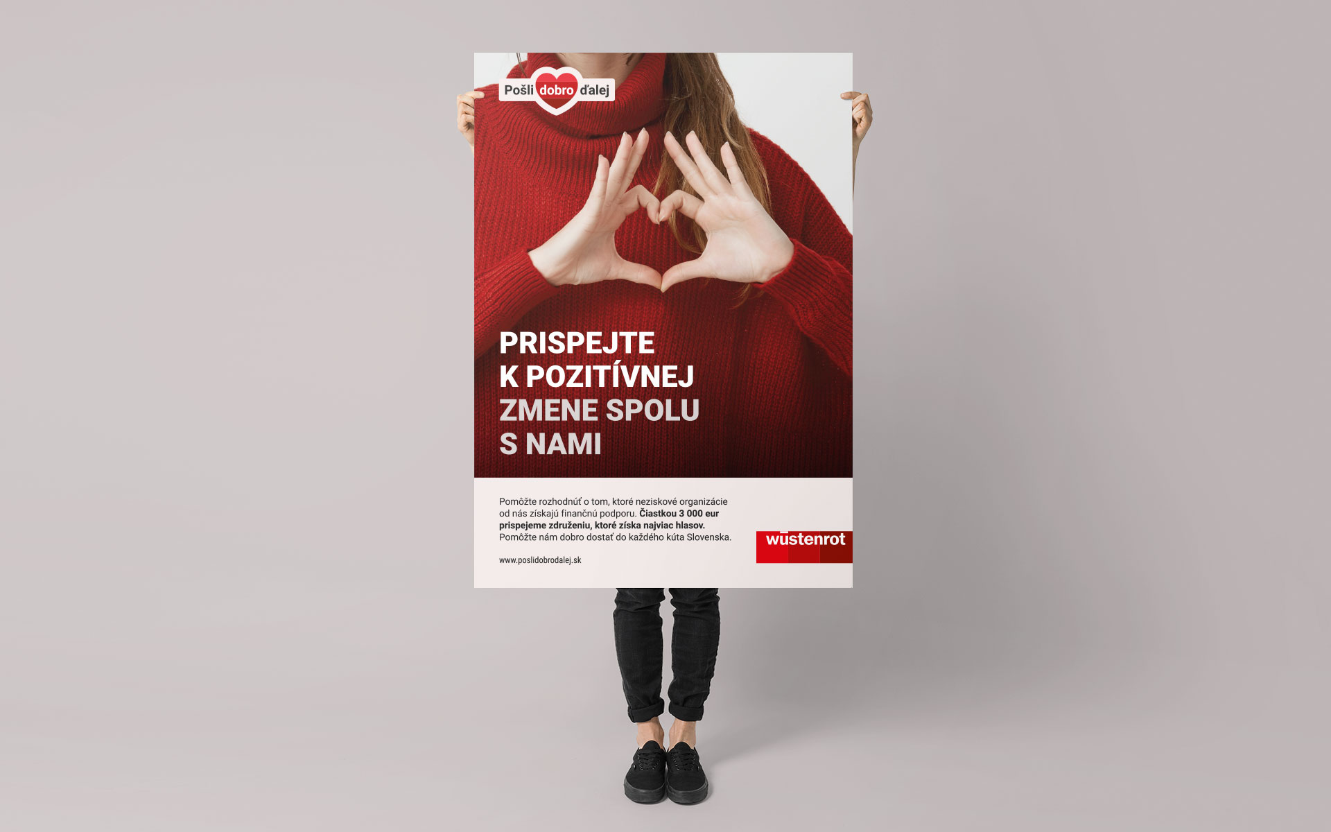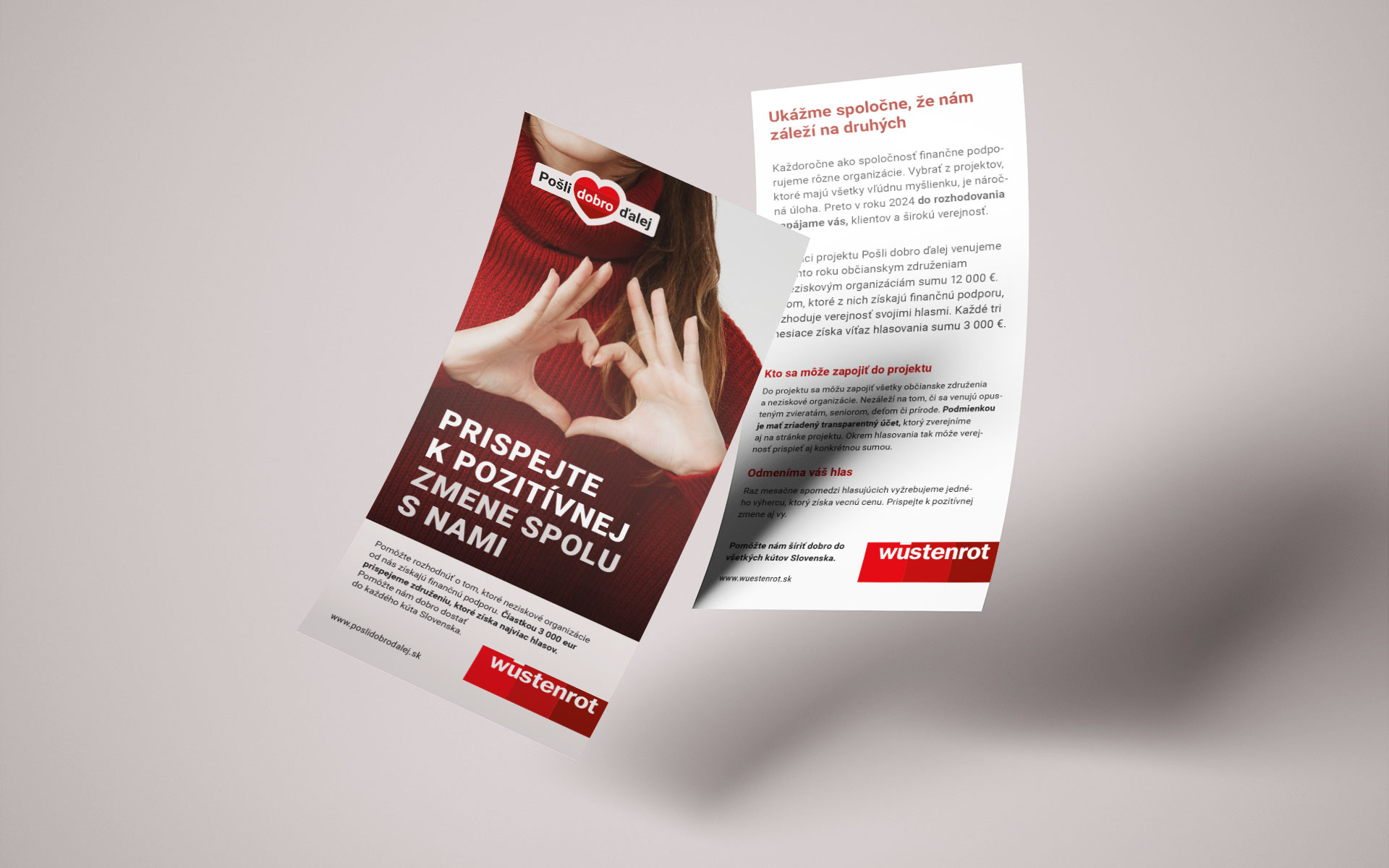 Predstavte si kampaň, ktorá finančne pomôže dvanástim občianskym združeniam či neziskovkám. Presne to je výsledkom našej spolupráce s Wüstenrot na projekte Pošli dobro ďalej, kde môžu ľudia hlasovať na podporu organizáciám. Každé tri mesiace počas roka 2024 sa spúšťa nové hlasovacie kolo. V každom kole sú traja víťazi, ktorí získajú finančnú podporu.